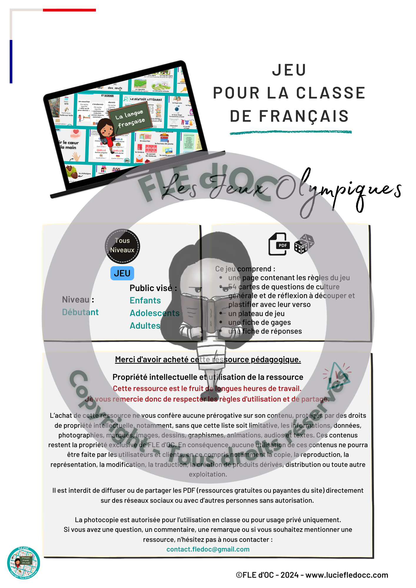 Cette ressource est également disponible en pack avec la leçon et le set de flashcards : https://www.luciefledocc.com/produit/pack-les-jeux-olympiques-tous-niveaux/