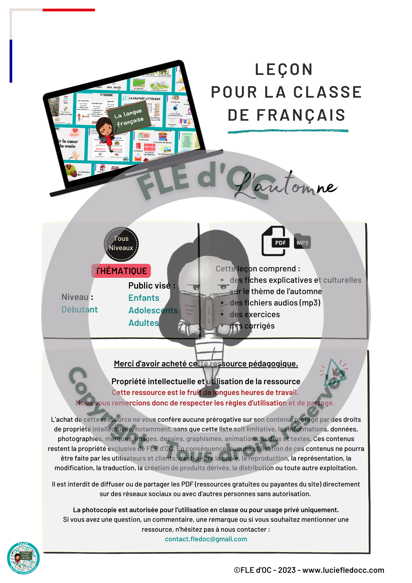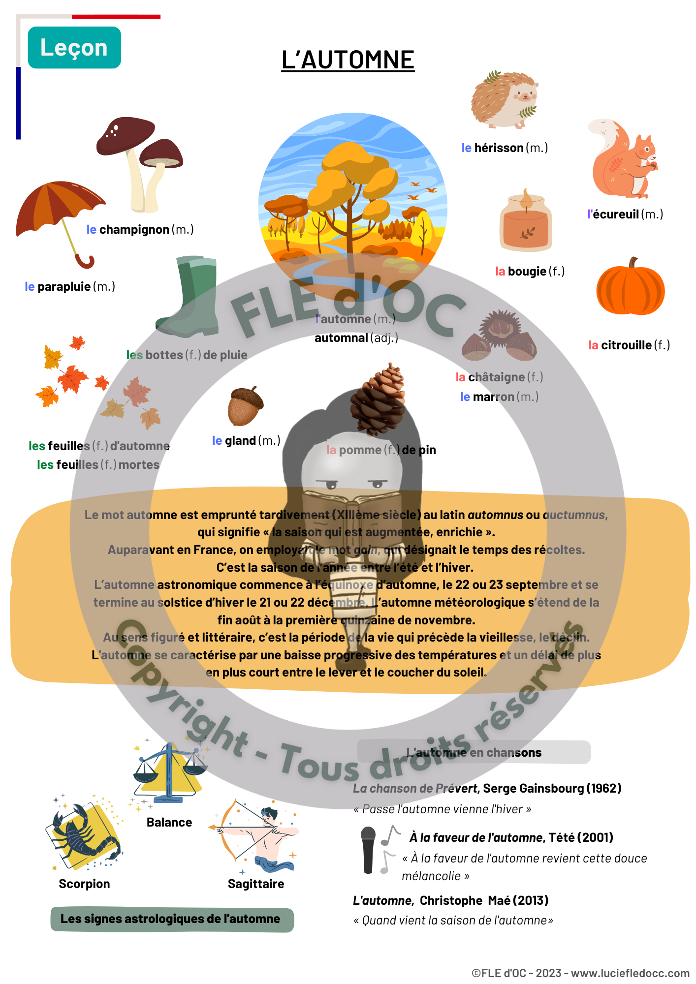 Cette ressource est également disponible en pack avec le set de flashcards : https://www.luciefledocc.com/produit/pack-lautomne-tous-niveaux/