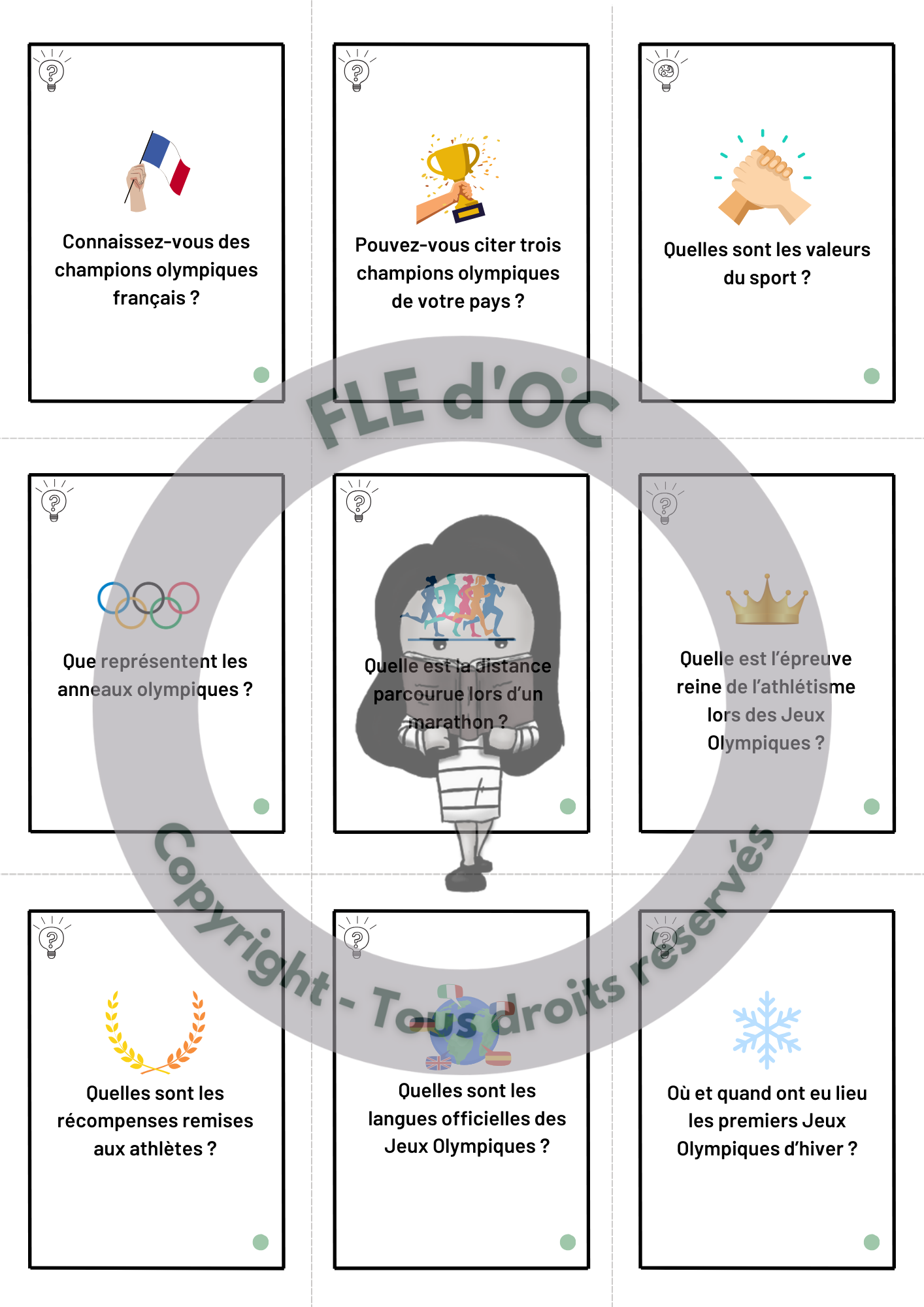 • 69 flashcards sur les sports aux JO en deux formats (portrait et paysage)