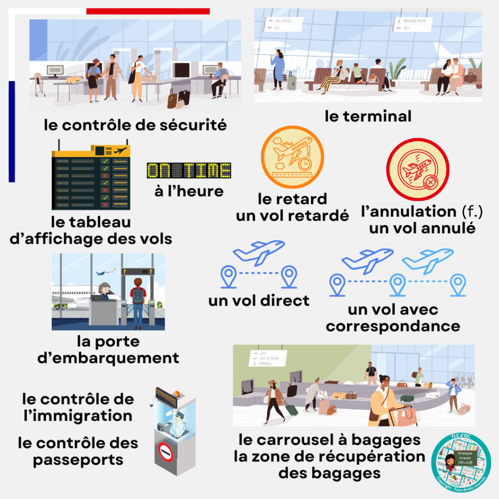 Prendre l’avion peut être stressant, surtout quand on voyage dans une langue étrangère. À l’aéroport, il faut comprendre les annonces, répondre aux questions du personnel, montrer ses documents et parfois demander de l’aide. Avec un peu de préparation, il est possible de voyager plus sereinement en français. Dans cet article, vous trouverez le vocabulaire essentiel pour voyager en avion, des phrases simples et utiles pour chaque étape du trajet, ainsi que des supports audio pour vous entraîner. L’objectif est de vous aider à communiquer avec confiance et à réussir votre voyage en français. Bon vol ! ✈️